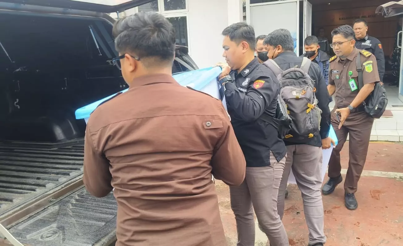 Sekitar pukul 13.20 Wita, petugas terlihat membawa berkas-berkas dan memasukkannya ke dalam box container yang kemudian diangkut menggunakan mobil operasional Kejati.