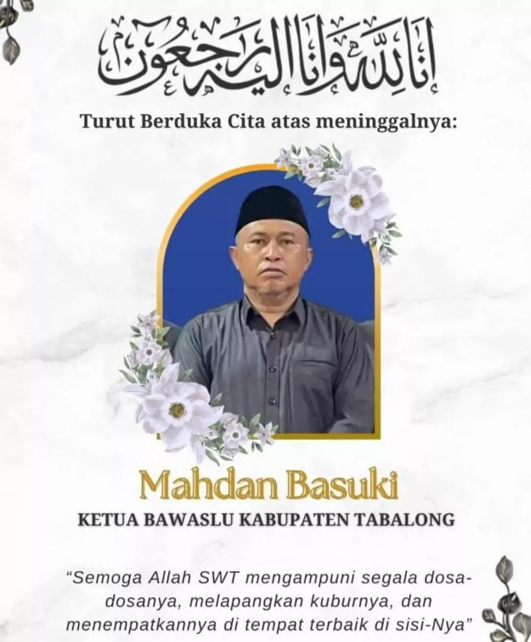 Mahdan mengembuskan napas terakhir di RSUD H Badaruddin Kasim, Tanjung. Kabar wafatnya dibenarkan Komisioner Bawaslu Tabalong, H Taberani.