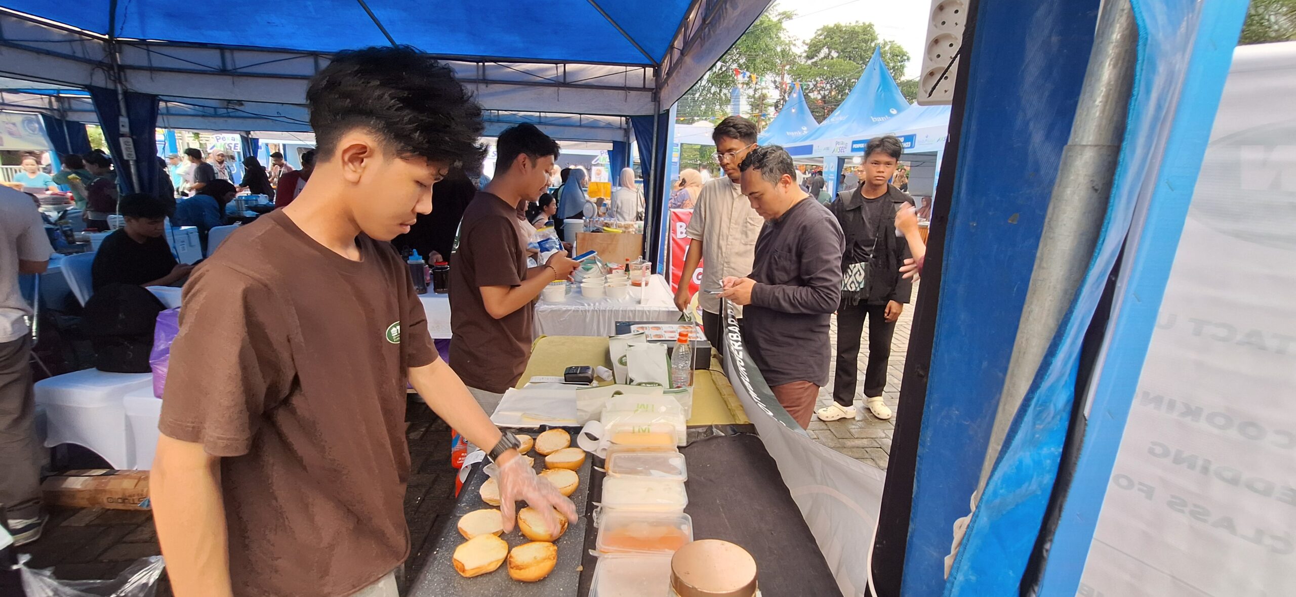 Ratusan pengunjung tampak antusias memadati lokasi acara, meski sempat diguyur hujan. Tenant makanan dan minuman menjadi yang paling banyak diserbu pengunjung.