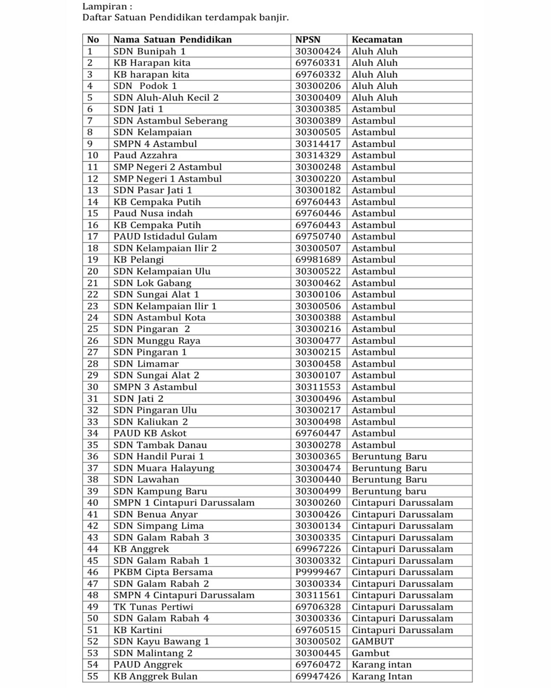 Dinas Pendidikan Kabupaten Banjar resmi mengalihkan pembelajaran di sekolah terdampak banjir ke Pembelajaran Jarak Jauh (PJJ) demi menjaga keselamatan peserta didik.