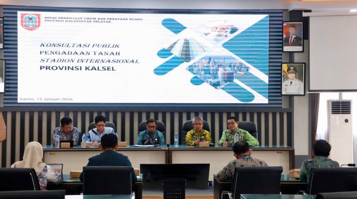 BANJARUPDATE.COM, BANJARBARU – Pemerintah Provinsi Kalimantan Selatan melalui Dinas Pekerjaan Umum dan Penataan Ruang Provinsi Kalimantan Selatan menggelar Konsultasi Publik Pengadaan Tanah untuk pembangunan Stadion Internasional Provinsi Kalimantan Selatan, di Ruang Rapat Dinas PUPR Kalsel, Banjarbaru, Kamis (15/1/2026).
