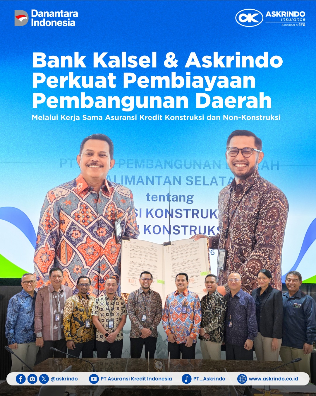 BANJARUPDATE.COM, BANJARMASIN – PT Asuransi Kredit Indonesia (Askrindo) menjalin kerja sama strategis dengan PT Bank Pembangunan Daerah Kalimantan Selatan atau Bank Kalsel dalam pengembangan perlindungan asuransi atas portofolio kredit, mencakup sektor konstruksi maupun nonkonstruksi.