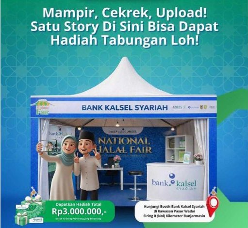 Peserta cukup mengambil foto atau video di area booth, mengunggahnya ke Instagram Story dengan menandai tiga teman, serta menyertakan tag @Bankkalsel dan @Bankkalselsyariah. Tagar #halalfest2026 dan #bankkalselsyariah juga wajib dicantumkan. Setelah itu, bukti unggahan ditunjukkan kepada petugas untuk didata.