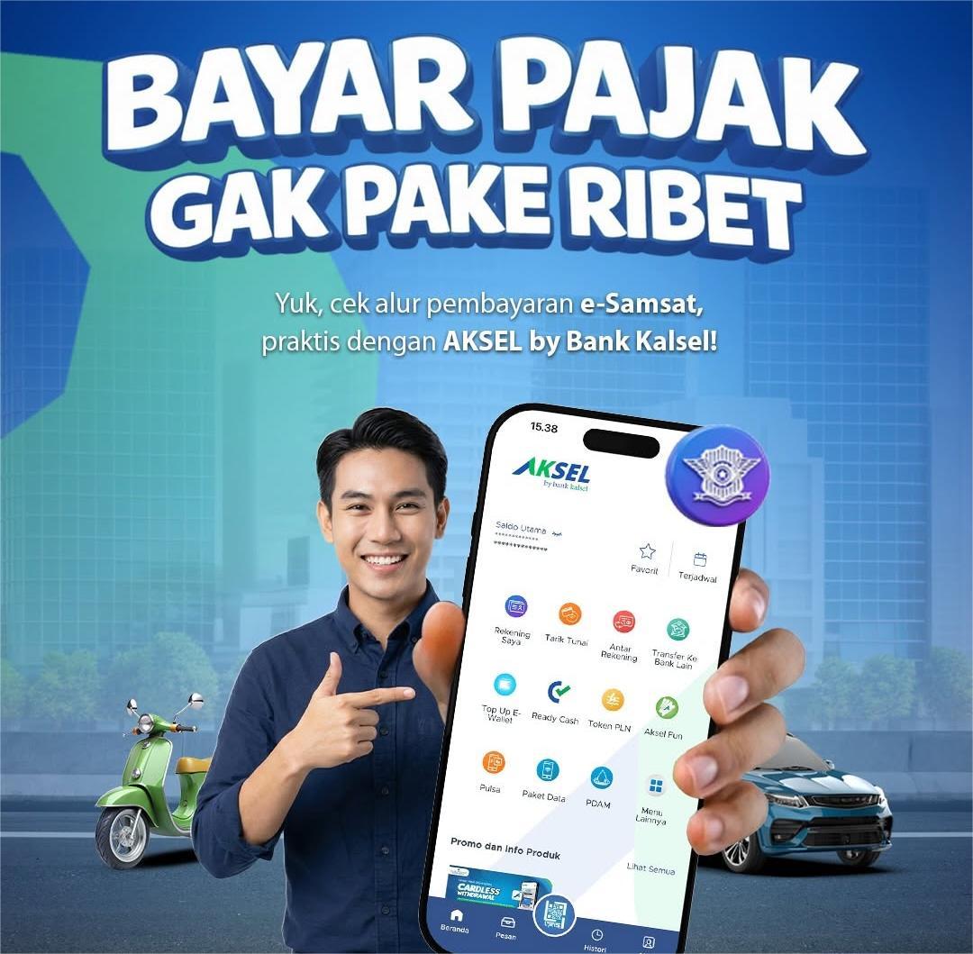 Warga cukup memanfaatkan layanan E-Samsat melalui aplikasi AKSEL by Bank Kalsel. Dengan layanan ini, pembayaran pajak tahunan kendaraan dapat dilakukan kapan saja dan di mana saja tanpa harus datang ke kantor Samsat.