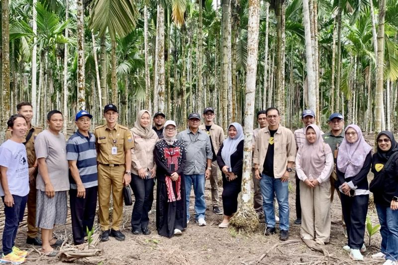 Jajaran Dishut Kalsel mengunjungi sentra pinang varietas Betara di Kecamatan Betara, Kabupaten Tanjung Jabung Barat, Provinsi Jambi, Selasa (10/2/2026). Foto-Dishut Kalsel