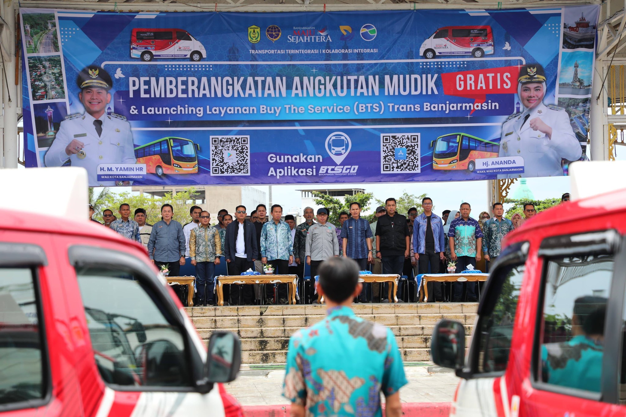 BANJARUPDATE.COM, BANJARMASIN – Pemerintah Kota Banjarmasin melalui Dinas Perhubungan menggelar kegiatan Pemberangkatan Angkutan Mudik Gratis sekaligus launching layanan Buy The Service (BTS) Trans Banjarmasin, yang dilepas langsung oleh Wali Kota Banjarmasin, H. M. Yamin HR, di Siring Balai Kota Banjarmasin, Minggu (15/03) pagi.