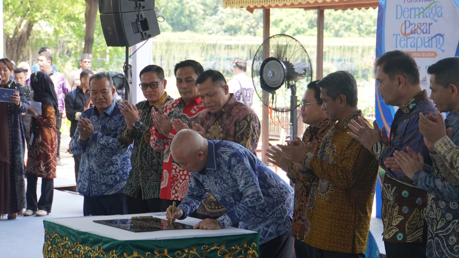 BANJARUPDATE.COM, JAKARTA – Replika pasar terapung khas Kalimantan Selatan kini hadir di Taman Mini Indonesia Indah (TMII). Bupati Kotabaru H Muhammad Rusli turut menyaksikan langsung penandatanganan prasasti dermaga yang jadi simbol pelestarian budaya Banjar di ibu kota.
