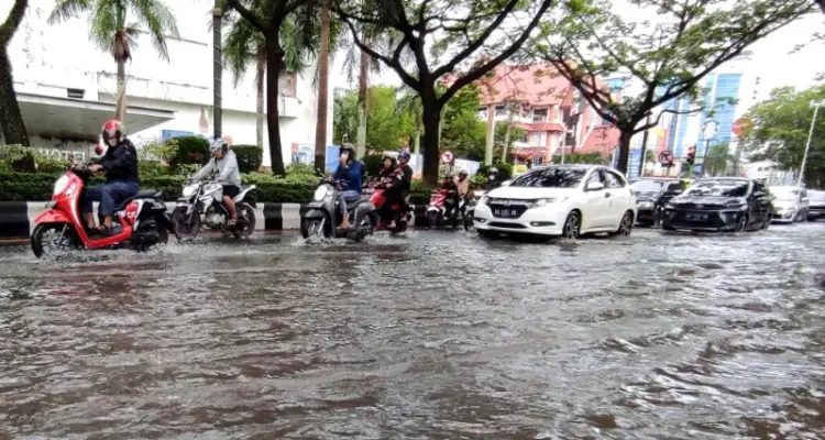 BANJARUPDATE.COM, BANJARMASIN – Hujan deras kembali menyebabkan genangan di sejumlah titik utama